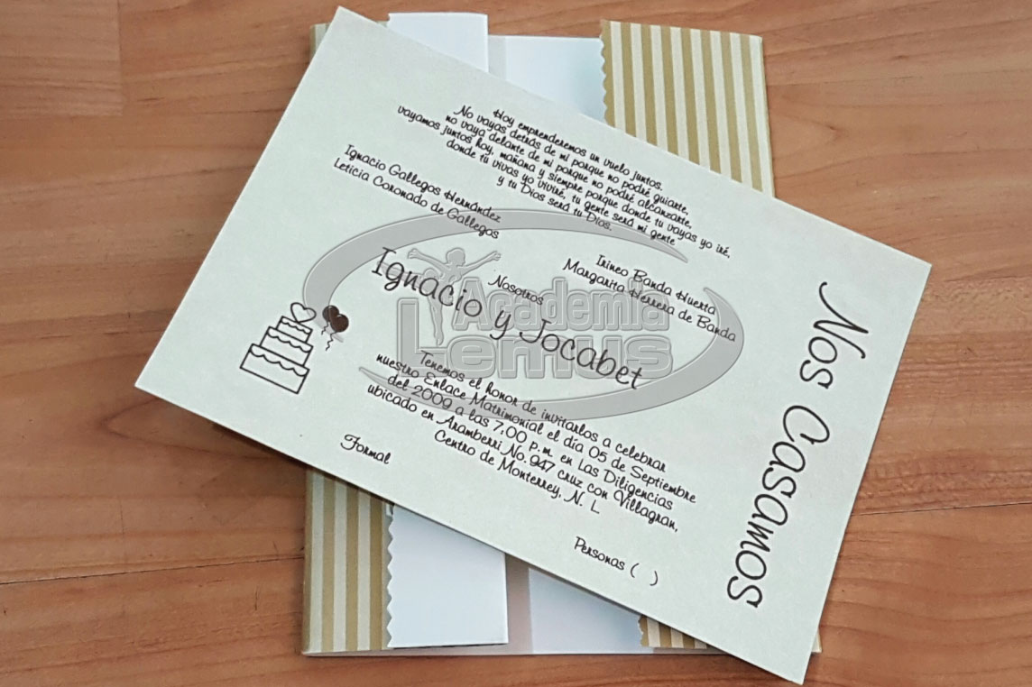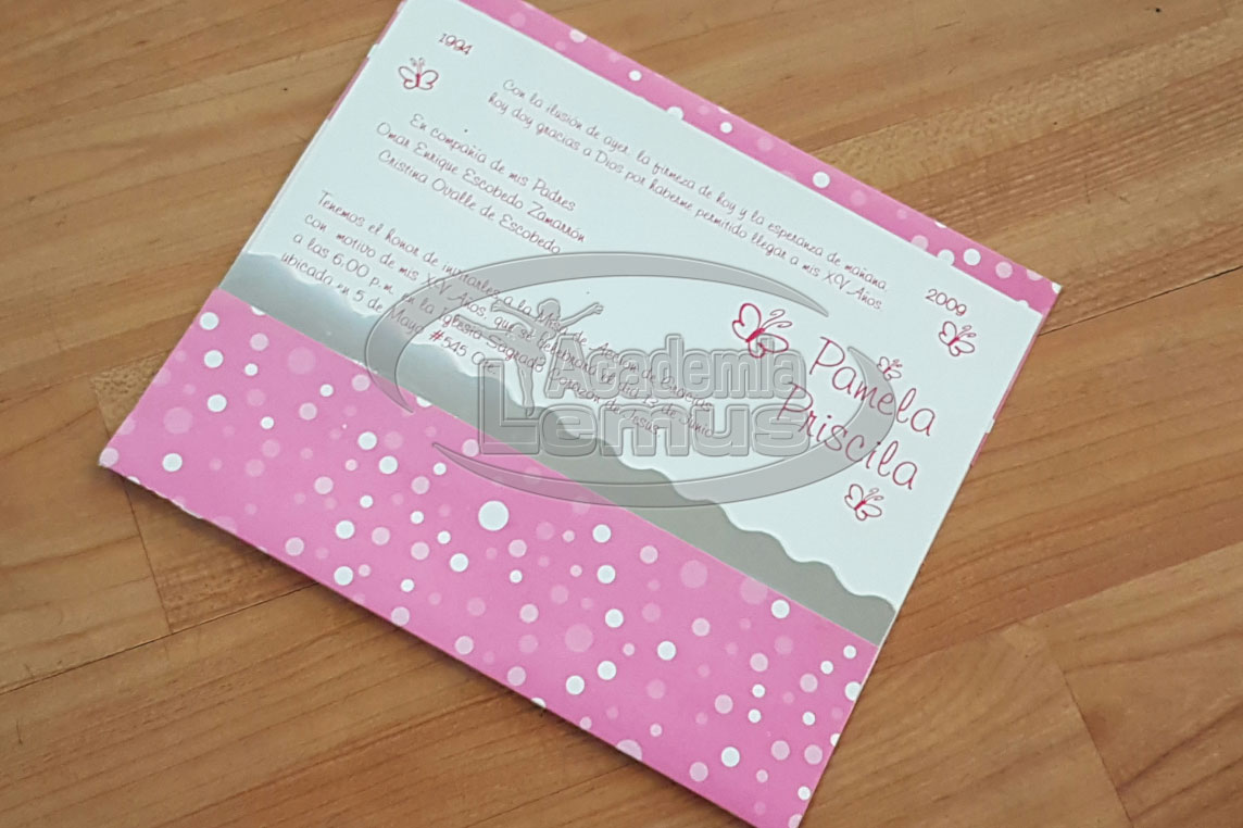 Home Inicio / Esenciales / Invitaciones Invitaciones Tenemos una gran variedad de modelos y adicionalmente podemos diseñar tu invitación dependiendo de tus ideas: Formas, Temática, etc. Más Servicios de Academia Lemus Lo esencial para toda Festejada o Quinceañera. Contamos con Coreografías Originales, Vestuario o Trajes de Gala, Maquillaje Conservador o totalmente innovador, Efectos Especiales para ese momento especial, los mejores Diseños de Vestido y los modelos únicos de Invitaciones. Recuerdos Revive una y otra vez ese Evento Espectacular teniéndolos guardados en los mejores formatos: - Videofilmación Full HD, Blu Ray y 4K - Fotobook - Fotobook de Firmas - Banner - Foto de Estudio Ambientación y Animación Ten todo lo necesario para que mantener a ti y tus invitados en ese ambiente festivo con: - Adorno con Globos. - Fiesta Temática - Pista de Cristal - Pantalla Gigante - DJ e Iluminación - Cabezas Robóticas - Fiesta Temática - Imitadores - Batucada Plus Realiza tu evento de acuerdo a las últimas tendencias de la moda(Trending), con los mejores servicios: - Limousines, Convertibles, Calandrias, Autos Clásicos, Helicopteros, etc - Figuras de Hielo - Fuente de Chocolate, Chamoy y Queso - Mesa de Postres o Carnes Frias - Candy Bar - Cabina de Fotos - Vuelo Papillo - Cocktelería y Servicio de Barman CONTÁCTANOS Enviar Encuéntranos en